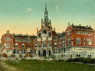 L’Hospital de la Santa Creu, que al segle XVI disposava d’unes quatre-centes places, funcionà com a hospital general de Barcelona fins que, el 1911, l’Hospital es féu càrrec del nou Hospital de Sant Pau cap a on, progressivament, s’hi van anar traslladant els serveis. El 1921, l’Ajuntament comprà l’edifici i, posteriorment, l’Institut d’Estudis Catalans (IEC) s’establí a l’antiga Casa de Convalescència; la Biblioteca de Catalunya, constituïda amb el fons bibliogràfic i documental de l’IEC, fou instal·lada a l’edifici gòtic de l’antic hospital; al costat del claustre s’hi establí l’Escola Massa de belles arts.
